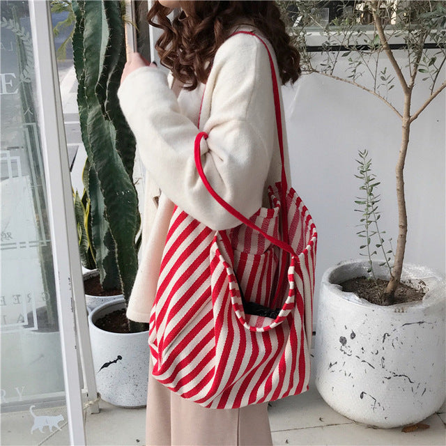 Striped Large Canvas Bag